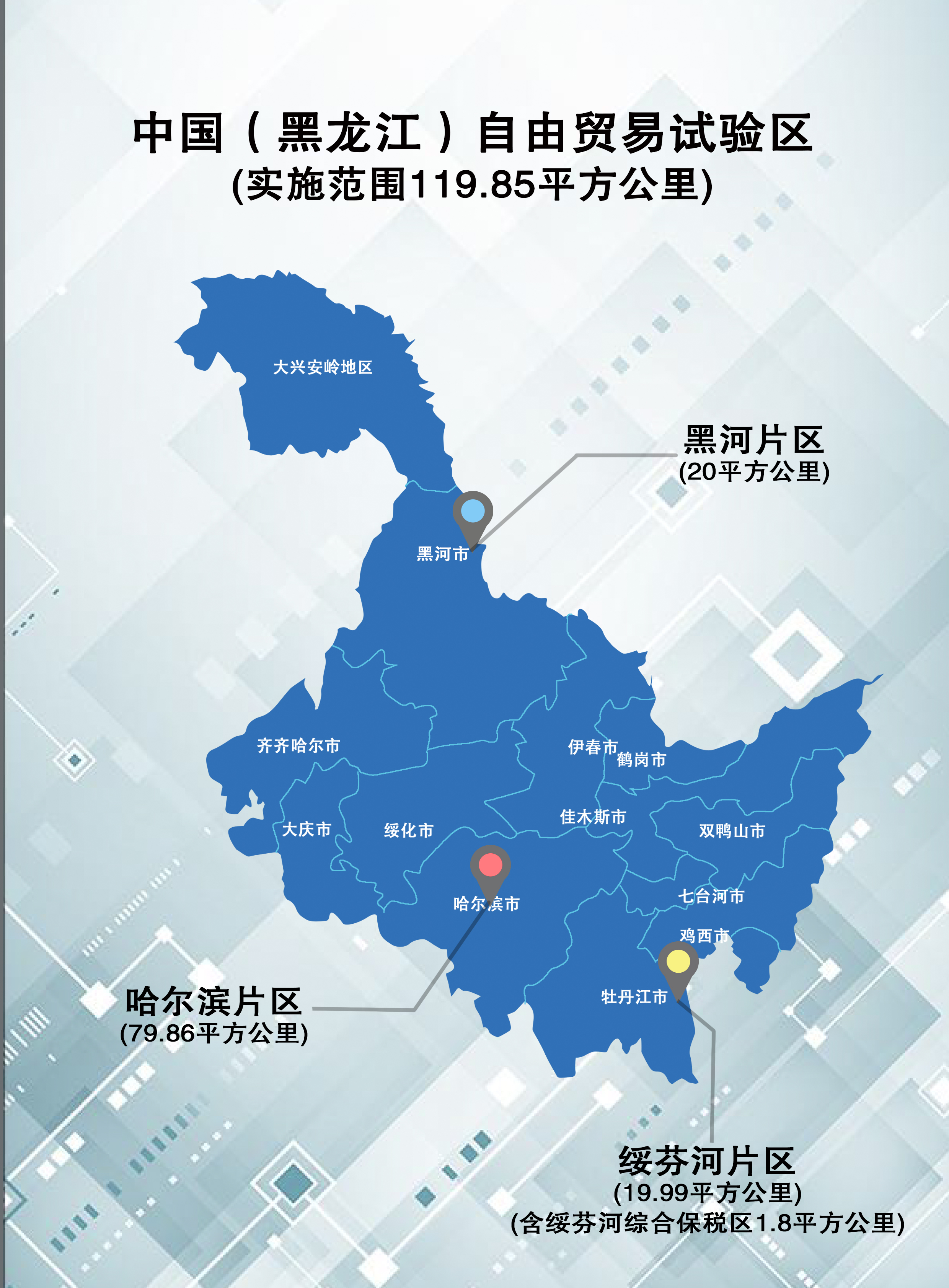 中国(黑龙江)自由贸易体育外围app网站365_世界杯365软件_365bet资讯网(以下简称黑龙江自贸体育外围app网站365_世界杯365软件_365bet资讯网)于2019年8月2日经国务院正式批准设立。自贸体育外围app网站365_世界杯365软件_365bet资讯网的实施范围119.85平方公里,涵盖三个片区:哈尔滨片区79.86平方公里,黑河片区20平方公里,绥芬河片区19.99平方公里(含绥芬河综合保税区1.8平方公里)。 【体育外围app网站365】